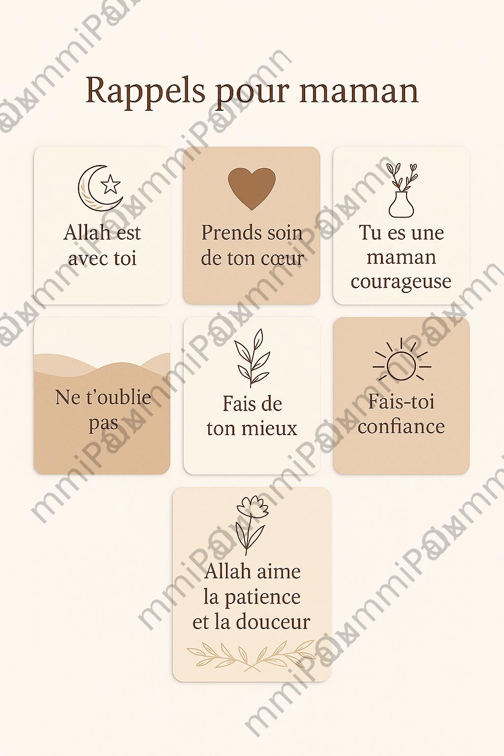 🌸 7 Cartes de Rappel pour les Mamans Musulmanes 🌸