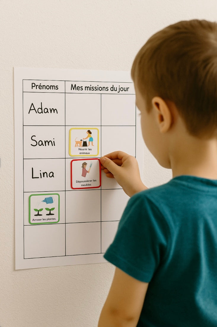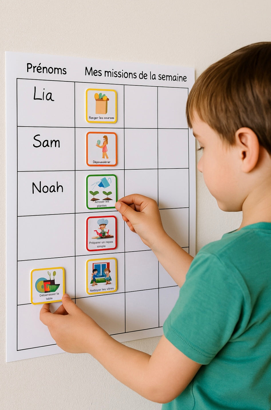 - Une utilisation modulable : prévu pour 3 enfants, mais imprimable en plusieurs exemplaires si tu as une grande fratrie.