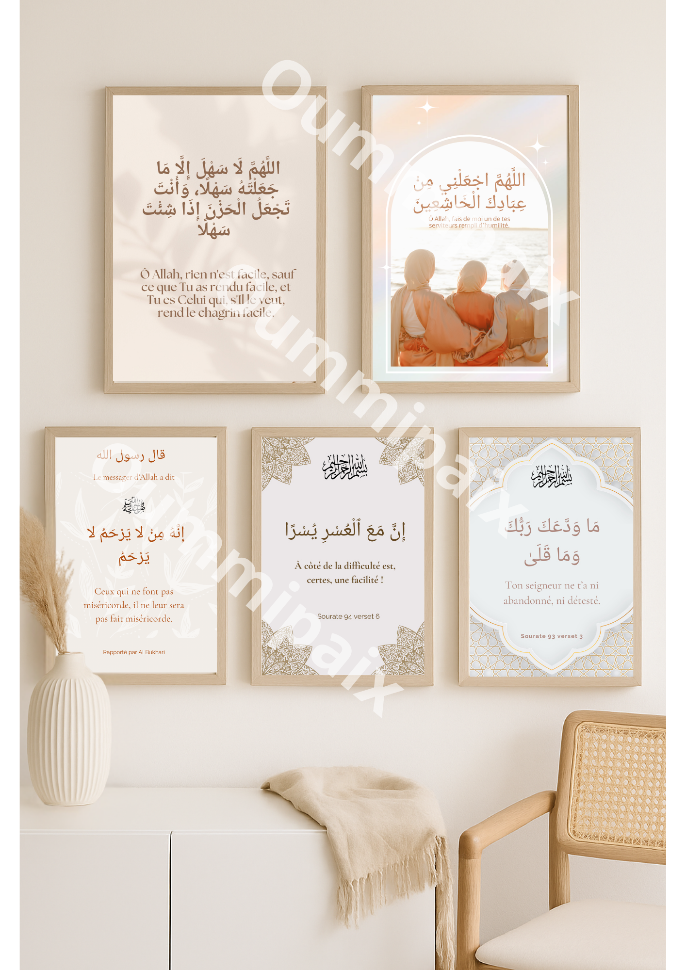 🌿 Pack Doux Mixte - 5 Affiches Coraniques & Invocations apaisantes