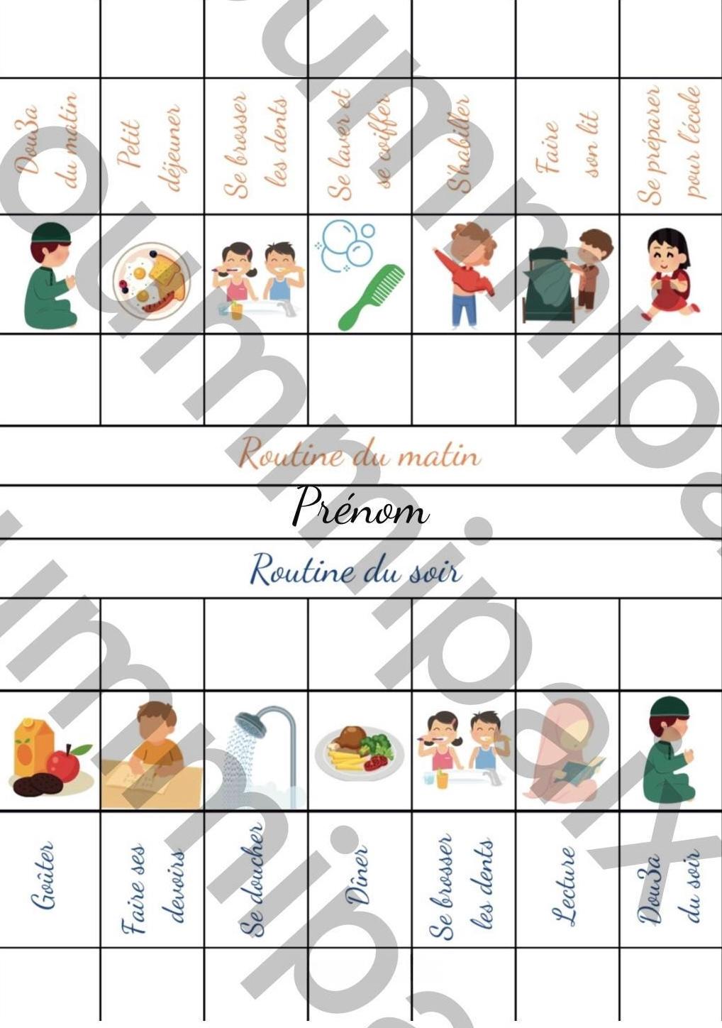 * 1 tableau "Routine du matin" (7 étapes illustrées)